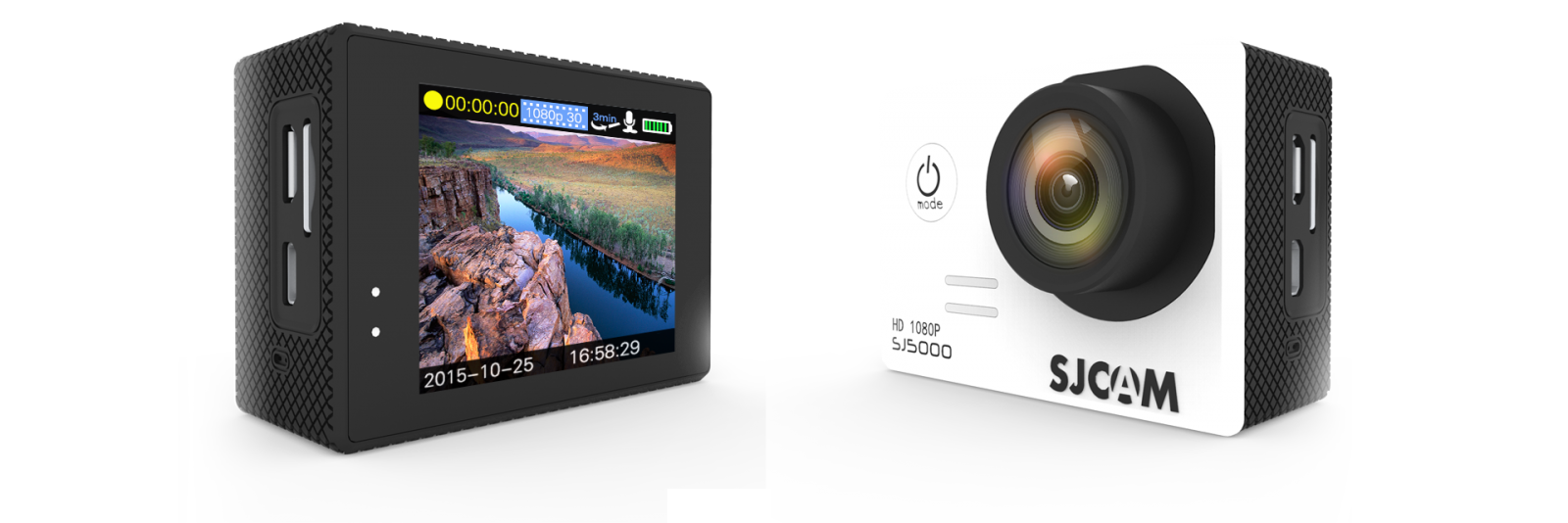 Модель SJCAM SJ5000 получила сенсор Panasonic 34110 и процессор Novatek 96655. Камера имеет 2" LCD дисплей с высоким разрешением, что намного удобнее, особенно при просмотре получившегося видео или фото. Сенсор изображения 1/2.33 "CMOS 14 Мп (Panasonic 34110) позволяет снимать видео в формате 1920х1080 30 или 60 к/сек и делать фотоснимки с максимальным разрешением 4608x3456. Угол обзора объектива составляет 170°. В SJCAM SJ5000 нет встроенного Wi-Fi модуля, весь процесс подключения камеры к другим устройствам берет на себя USB кабель.