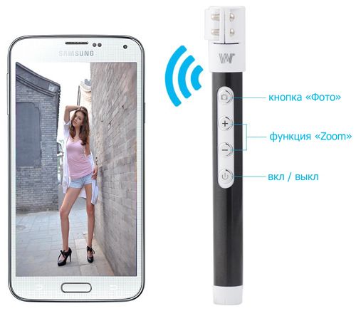 А для владельцев телефонов на базе Android после установки фирменного приложения, Вы даже сможете использовать функцию Zoom, нажимая кнопку "+" или "-" на рукоятке палки